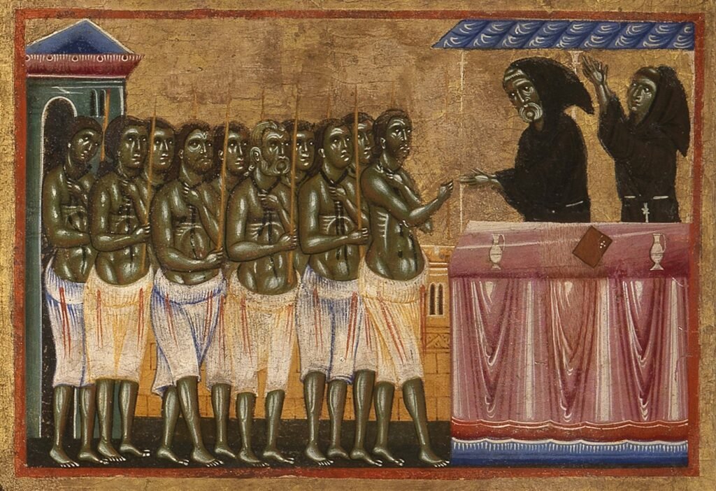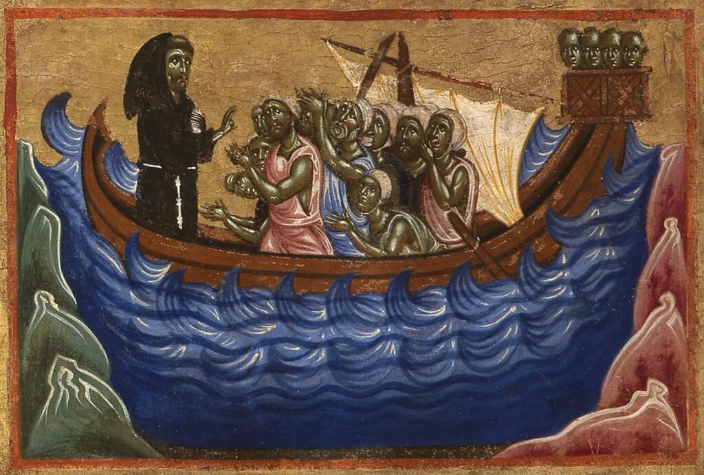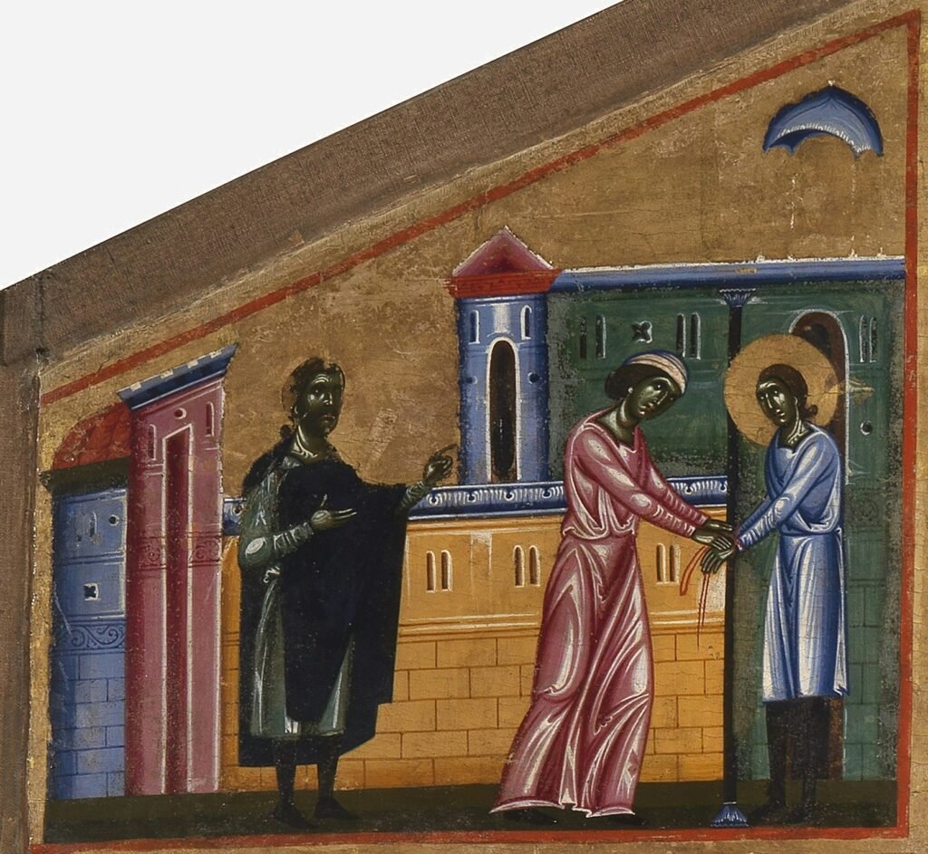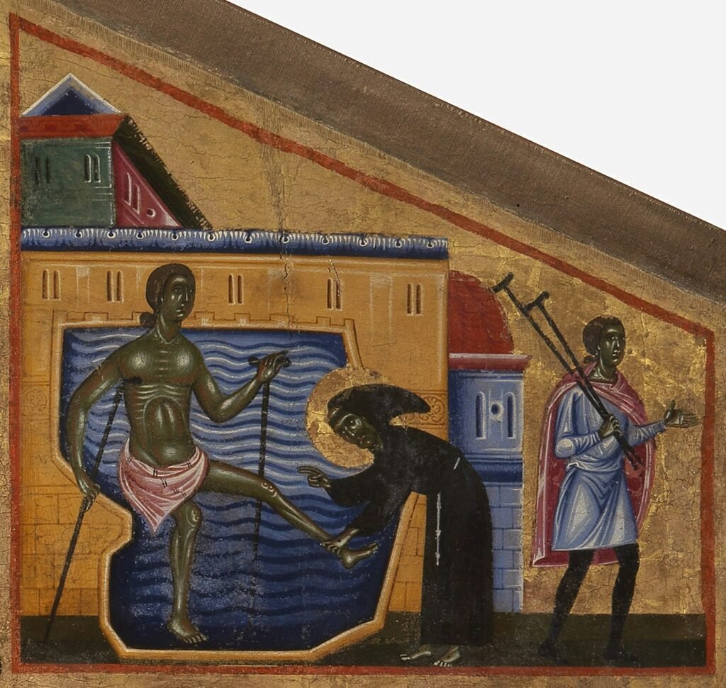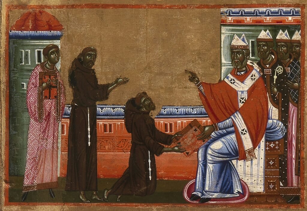 Os frades que aparecem nas intersecções das molduras, aclamando as várias histórias, respondem ao comando divino e convidam a expandir o consenso exigido pela imagem. “O Pai permitiu que o Filho se oferecesse no altar da cruz… deixando a nós o exemplo para que pudéssemos seguir suas pegadas…”, disse Francisco na Lettera a tutti i Fedeli; essas palavras podem ser repetidas como um resumo comentado para esta pintura.